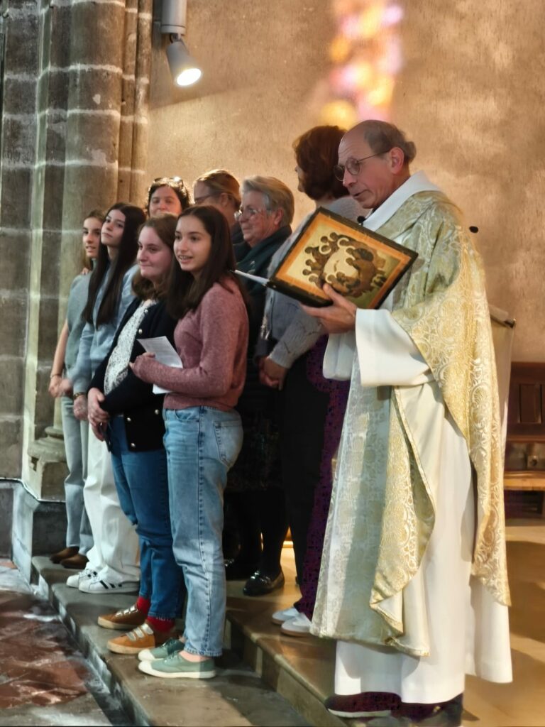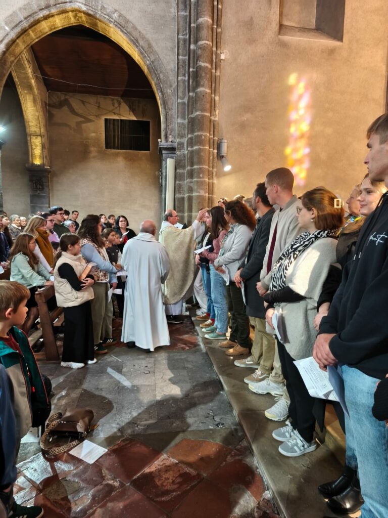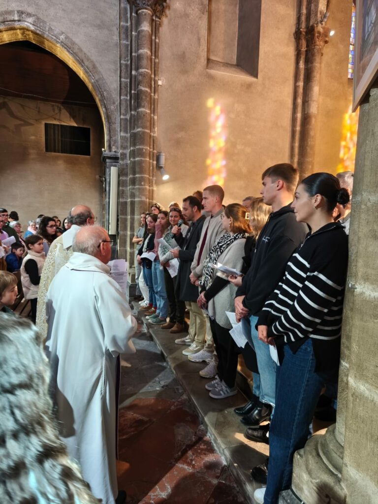 A l’occasion de la messe des familles du mois de Novembre, les jeunes du caté et toute l’assemblée ont vécu un moment fort: l’entrée en catéchuménat de 4 jeunes d’aumônerie paroissial et de 7 adultes.