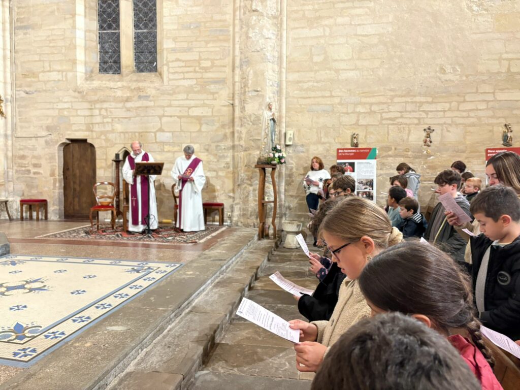L’un des temps forts de la célébration fut la remise des signets destinés aux enfants se préparant à leur première communion. Ce petit signe, à la fois simple et précieux, leur permettra de formuler officiellement leur demande d’avancer vers ce sacrement important. Un geste symbolique, qui marque une nouvelle étape sur leur chemin de foi.