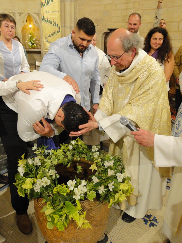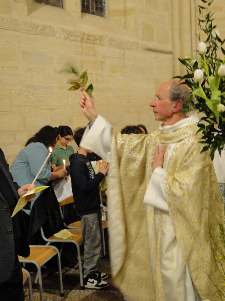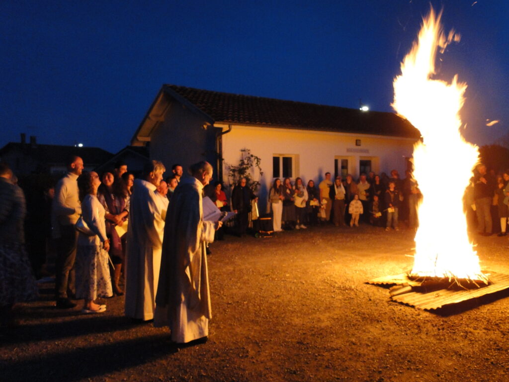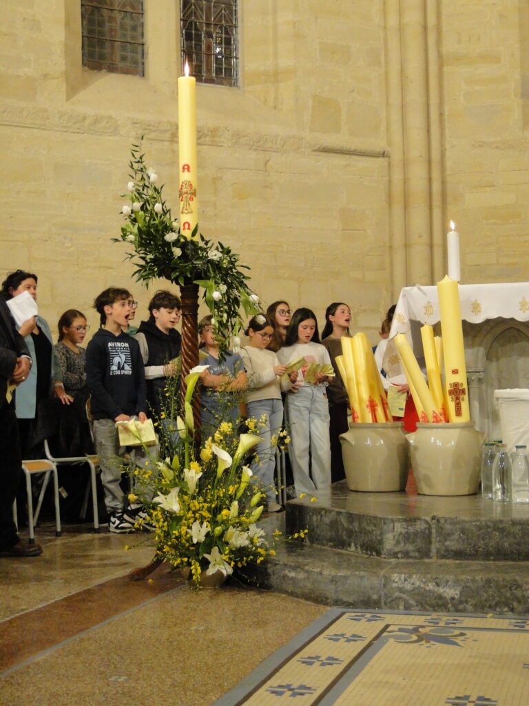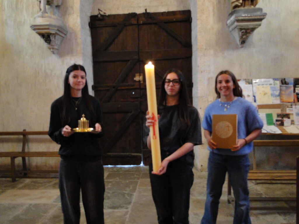 La Vigile pascale, célébrée dans la nuit du samedi au dimanche, a été un moment de grande joie pour toute la communauté. Nous avons eu la grâce d’accueillir dans l’Église, par le baptême, trois adultes : Delphine, Marjorie et Tommy. Leur démarche de foi est un témoignage fort pour tous. Au cours de cette même célébration, les jeunes préparant leur profession de foi ont également reçu la lumière pascale, signe de la présence du Christ ressuscité qui éclaire leur vie.