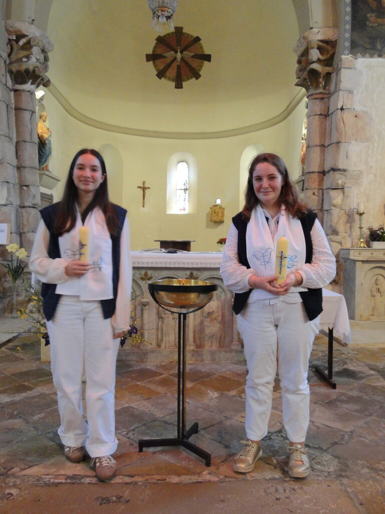 Le dimanche de Pâques au matin, la joie s’est poursuivie avec le baptême de deux adolescentes à Saubrigues, signe que la vie chrétienne continue de grandir au cœur de nos paroisses. Elodie et Amélie ont été accompagnées dans leur baptême par les jeunes de leur groupe.
