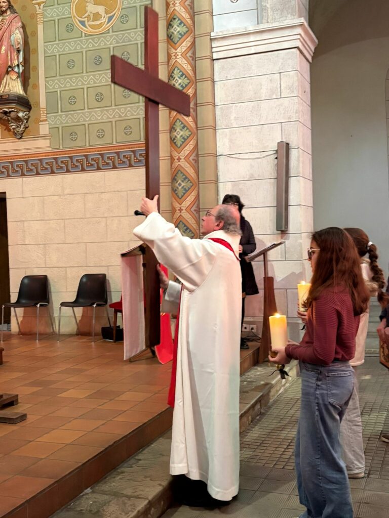 Le Vendredi Saint, les jeunes en chemin vers la profession de foi ont franchi une étape importante. Au cours de la célébration de la Passion, ils ont reçu la croix qu’ils porteront lors de leur profession de foi. Ce geste symbolique les engage à suivre le Christ sur un chemin de confiance et de fidélité. La célébration s’est poursuivie avec le partage d’un bol de riz au profit du CCFD.