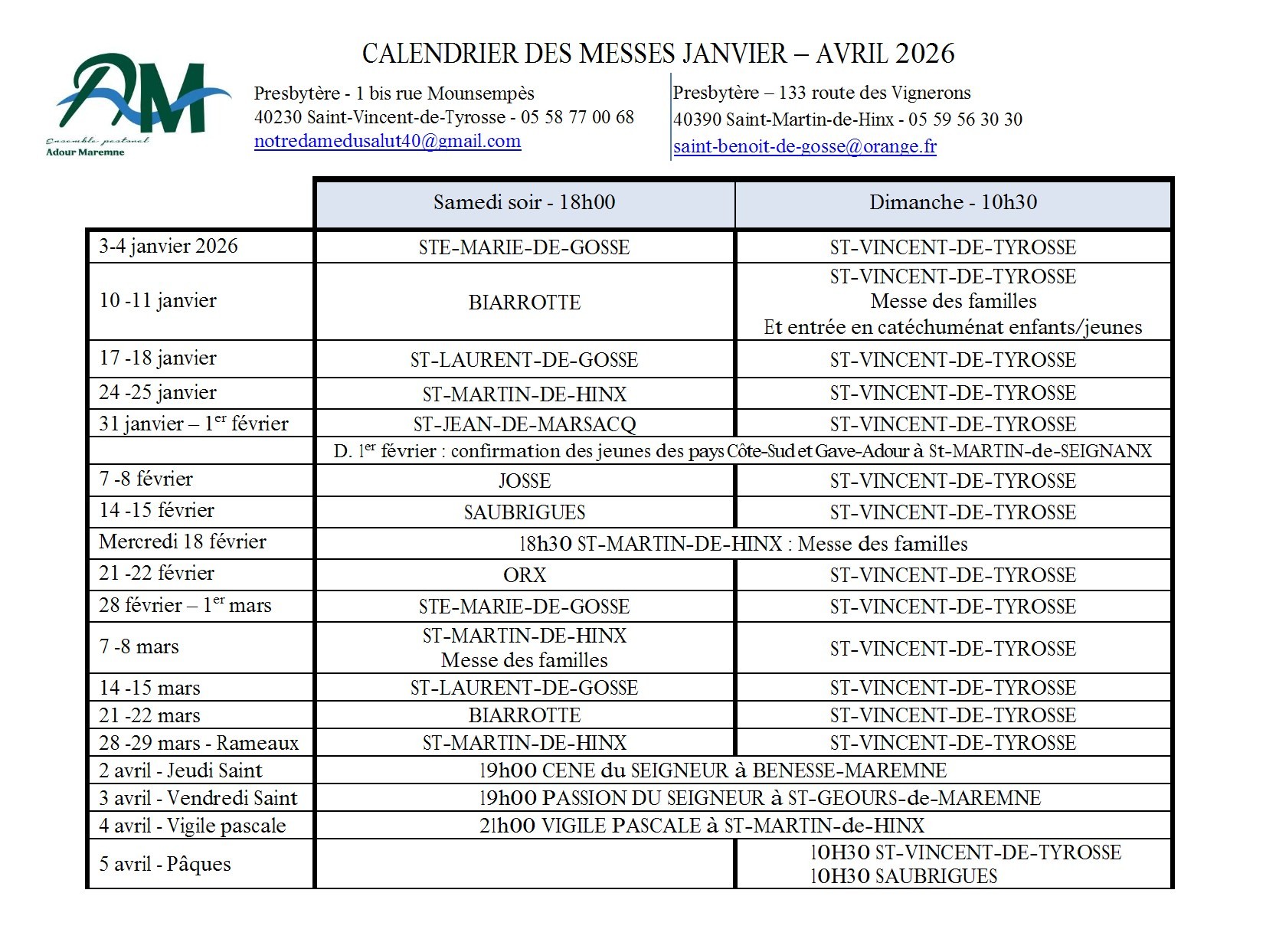 Horaires de messes